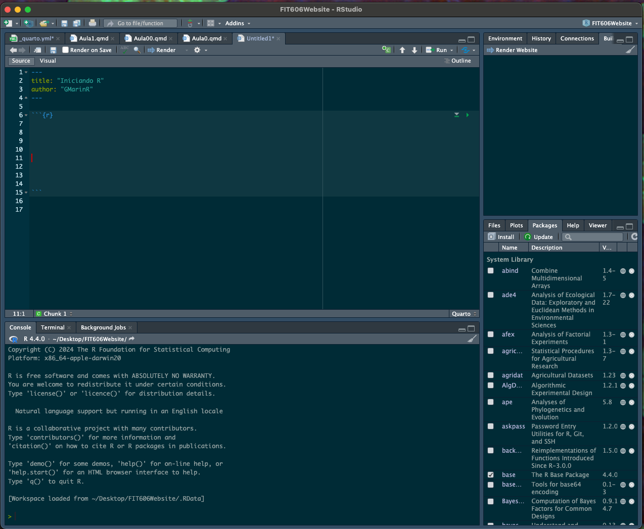 - En el archivo `Untitled.qmd`, puedes comenzar a escribir contenido utilizando Markdown y agregar bloques (chunck) de código R para realizar análisis, generar gráficos y más.