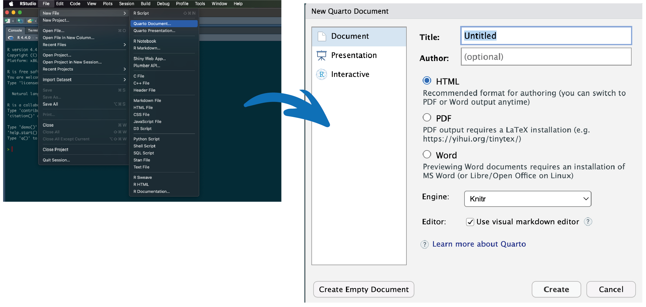 Untitled.qmdpara abrirlo y comenzar a editarlo.