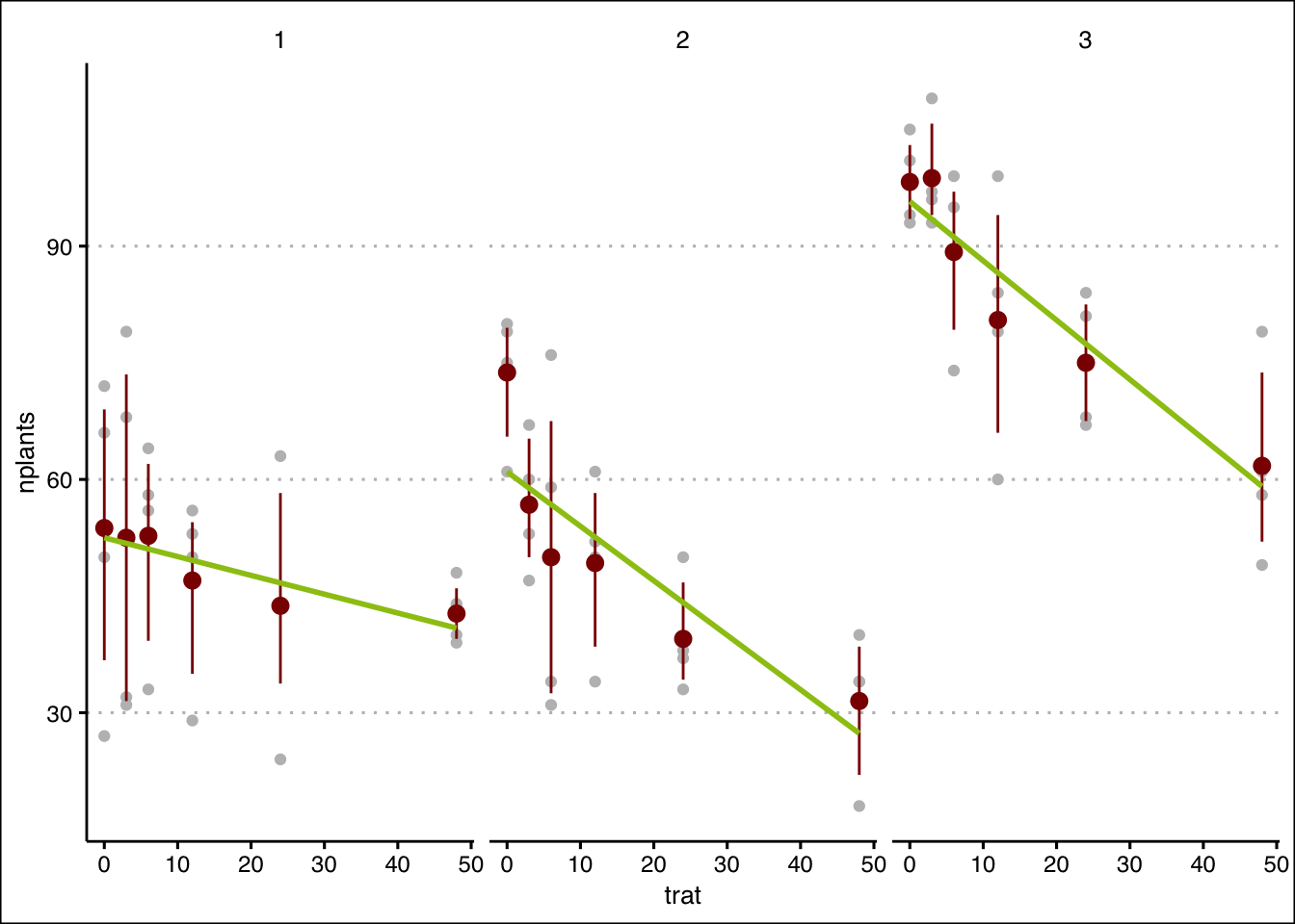 ggplot(aes(trat, nplants))+
