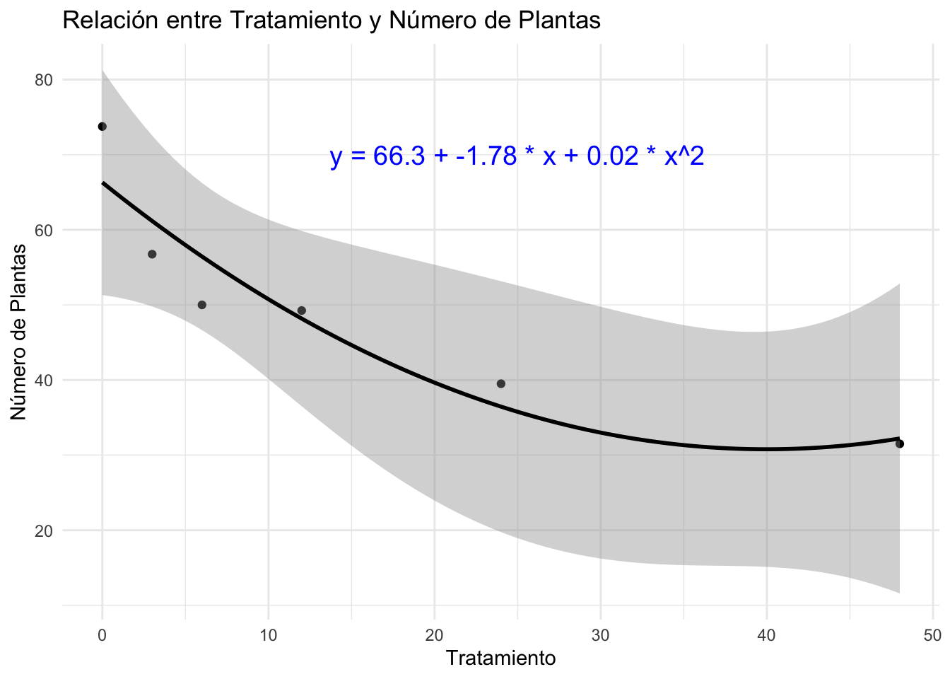 modelo_cuadratico <- lm(mean_nplants ~ trat + trat2, data = estande2)