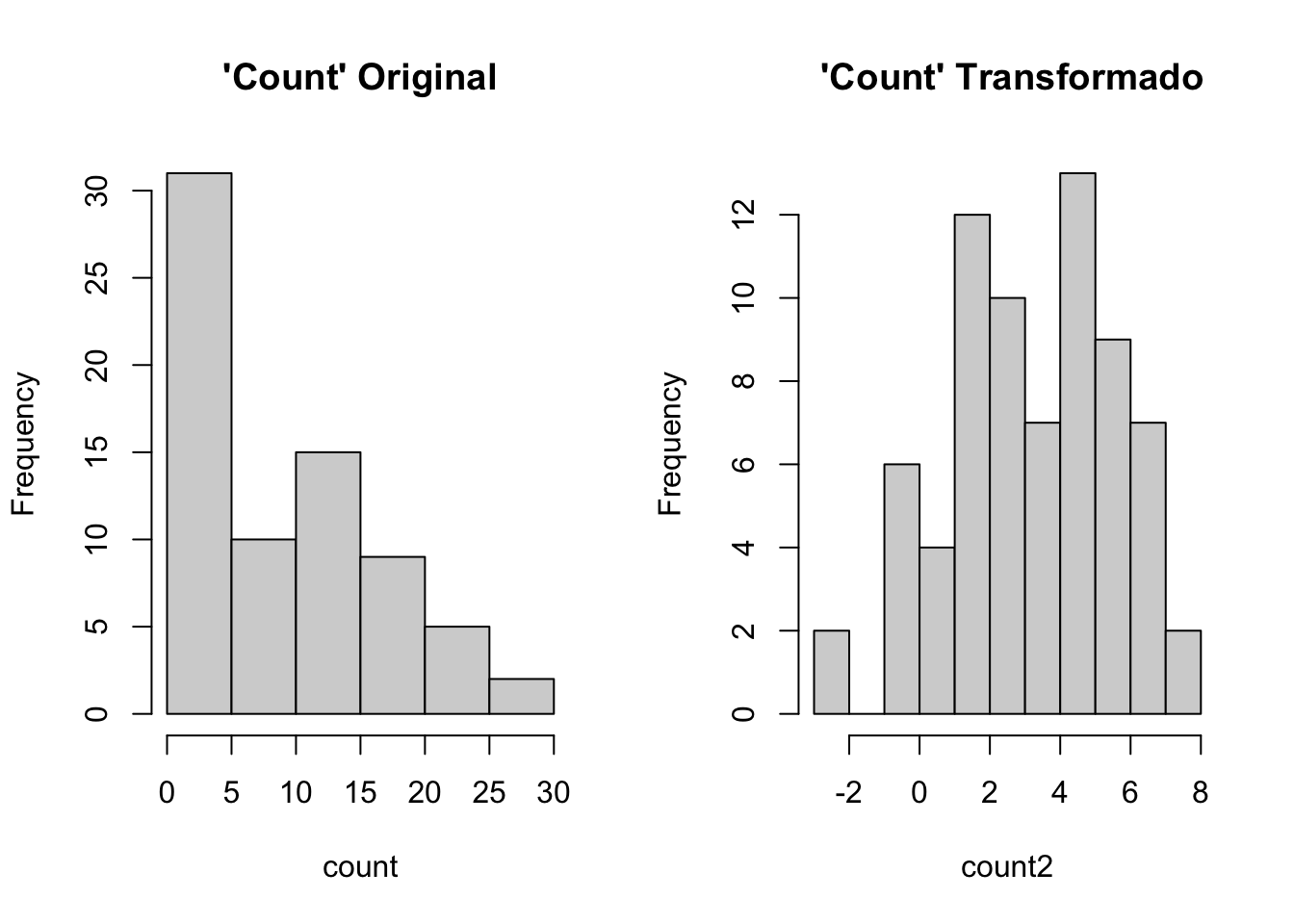 hist(insects$count2, main = " 'Count' Transformado", xlab = "count2")