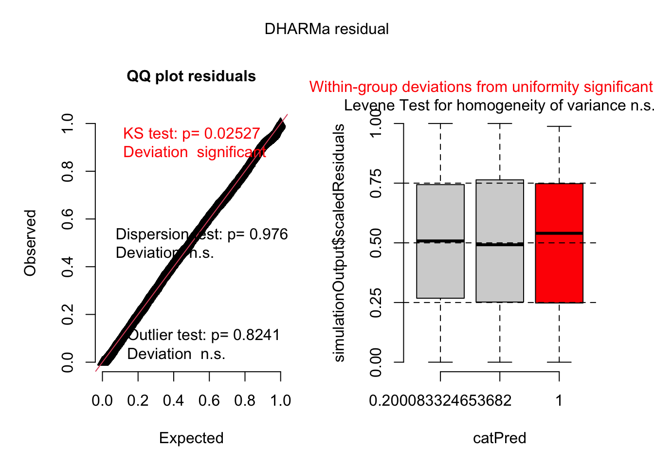 OK: Error variance appears to be homoscedastic (p = 0.316).